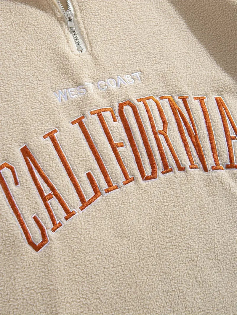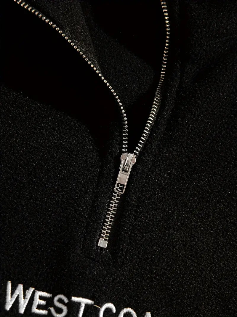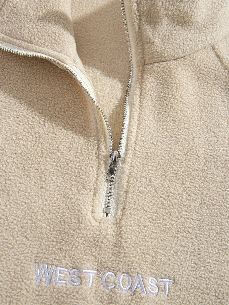 The product features a Mid-Collar 1/4 Zip Half-Open Cardigan Pullover made with 100% Polyester and detailed with Embroidery Fleece Sweatshirt material. The Long Sleeve design includes embroidered patterns, a slight stretch fabric, and a collared neck for a Preppy style. To maintain the quality, please hand wash and avoid dry cleaning. The fabric was knitted with precision and features Positioning Printing for an added touch. This Regular fit cardigan has a Secondary Process of Embroidery and weighs 210 grams.