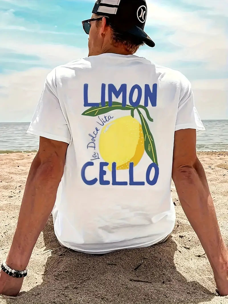 This men's Limoncello Lemon graphic tee features a lightweight, breathable microfiber fabric composed of 95% polyester and 5% spandex, ensuring comfort and durability for summer wear. Designed with a regular fit and crew neck, it offers a casual yet stylish look suitable for everyday outings and parties. The non-transparent, non-stretch fabric is easy to care for with machine washing. Highlighted by the "Dear Santa setta il limoncello" print, this pullover shirt combines streetwear fashion with practical outdoor leisurewear qualities, making it an excellent choice for young adults seeking trendy summer apparel.