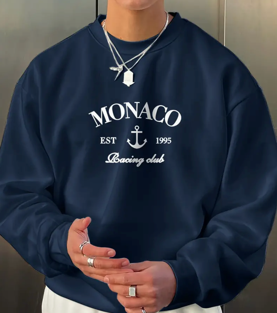 The pullover sweatshirt for men, known as MONACO, offers a cozy and stylish top perfect for hip hop streetwear. Made of 100% polyester, this sweatshirt features a patterned design with alphabets and slight stretch fabric. The crew neck and loose fit add to its casual style, while the knit fabric and positioning printing make it a unique addition to your wardrobe. For maintenance, simply machine wash for convenience and do not dry clean. Great as a gift idea, this sweatshirt is perfect for the autumn and winter fashion season.
