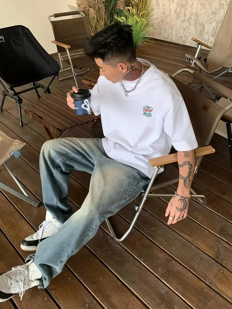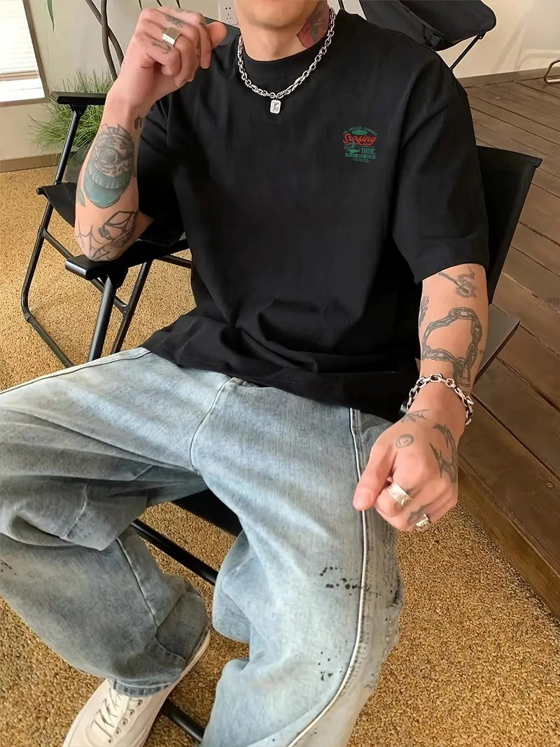This men's short sleeve T-shirt is crafted from 100% cotton, offering a lightweight and breathable fit ideal for summer. Featuring a versatile round neck and a relaxed, regular silhouette, it ensures comfort for everyday wear. The shirt showcases a distinctive printed design created through precise positioning printing on a semi-sheer, slightly stretchable knit fabric. Suitable for casual occasions, this unisex-style top supports easy care with hand washing recommended and no dry cleaning. A classic, reliable basic tee designed for adult wearers seeking both style and comfort.