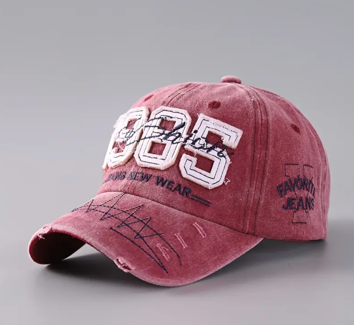 This vintage-style baseball cap features a lightweight polyester construction with a distressed 1985 design, highlighted by geometric lines and a faded jeans pattern. Its stretch fit and drawstring closure ensure comfort and adaptability, making it ideal for outdoor activities, gym sessions, and casual gatherings. Designed for all-season wear, this woven dad hat is a thoughtful gift choice for men, dads, and women seeking a stylish yet functional accessory. Hand wash only to maintain its quality and appearance.